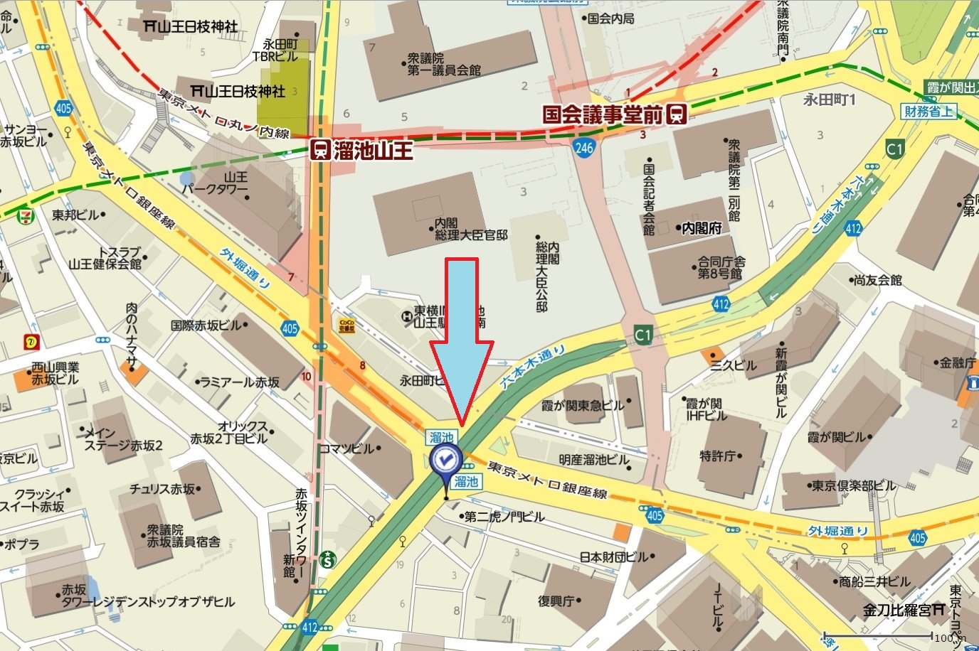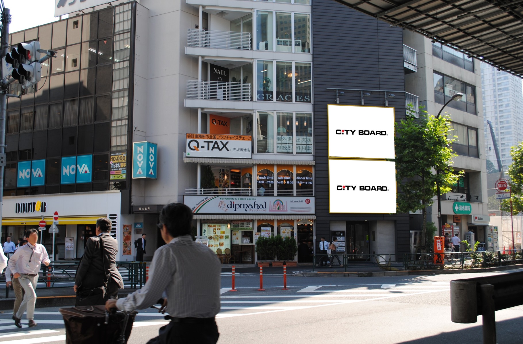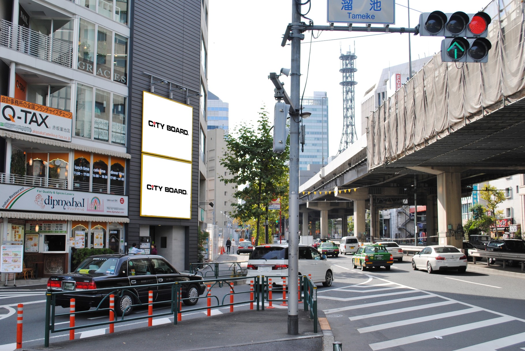 外堀通りを日比谷から六本木方向に向けて走る車へ向けた媒体。車両の多さはもちろん、通勤及び昼食休憩時などは交差点を渡る周辺オフィスの歩行者も特に多い交差点である。