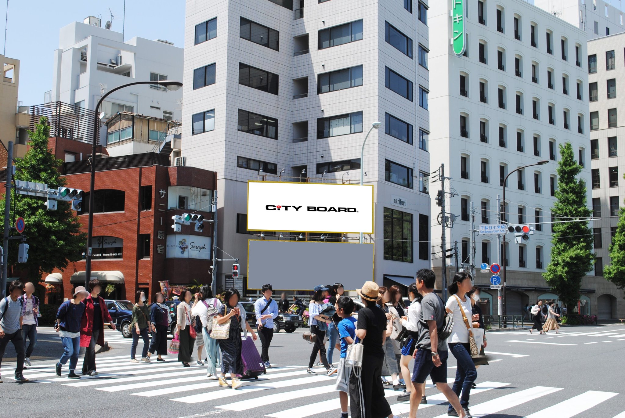 Victor青山スタジオから300メートルの場所に位置し、明治通りを神宮前から新宿方面、また神宮外苑から原宿駅方面へ向かう車へ向けた媒体として80年代初頭に設置。近年は副都心線の開通や多数のブティックが開業し、多くの歩行者が見受けられる。